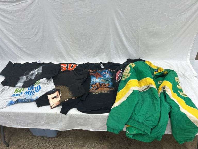 Most are extra large. Some haven't been worn. Oregon Ducks and Trailblazers jacket have some wear. As pictured.