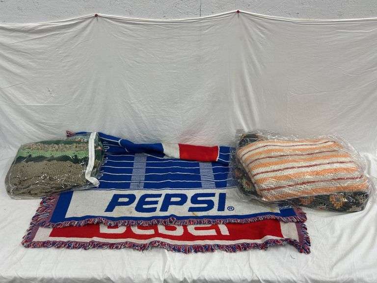 LOT 203 - Three Knit Blankets & One Pepsi Football Blanket
