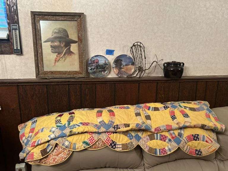 LOT 282 - Group of Items on the Ledge & Quilt