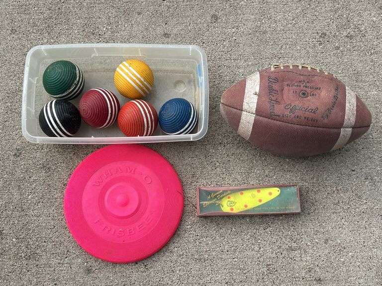 LOT 121 - Daredevle Lure, Football, Frisbee, & Croquet Balls
