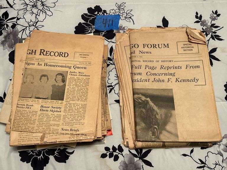 LOT 411 - 1950s Cooperstown ND School Newspapers & JF Kennedy Newspapers