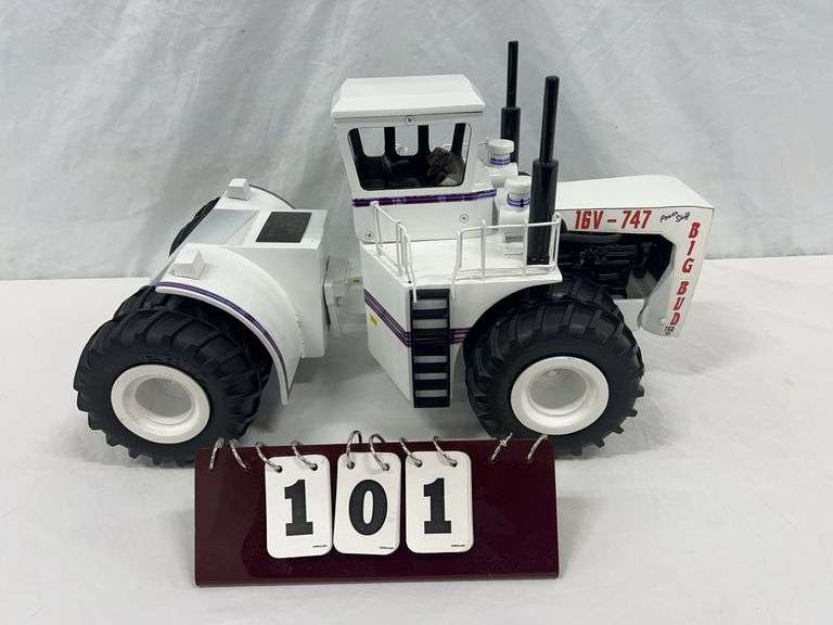 This is one of 1/16 scale mini Big Buds built by Martin Fast of Frazer, MT. It is in excellent condition. Hood and cab tilt. The plaque reads "Designed by Mini Big Bud Frazer MT for Chaney Gillham 1993." As pictured.