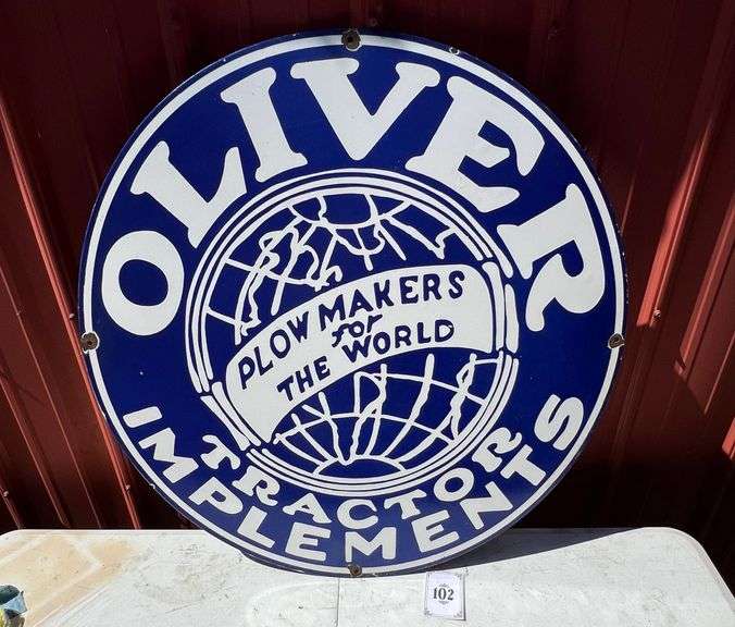 30”-1 sided porcelain Oliver tractor sign. As pictured.