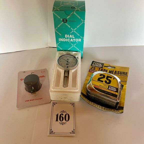 USB charger, gauge, and a 25’ tape measure. As pictured.