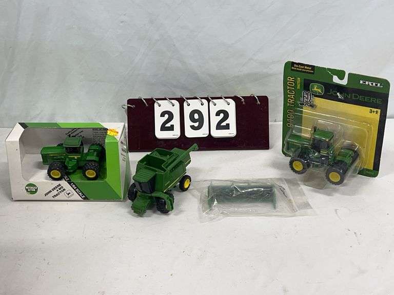 Combine with header, a 9400 tractor, and a wind up 4WD tractor. Stock numbers 551 and, 15321. Packages show wear. As pictured.