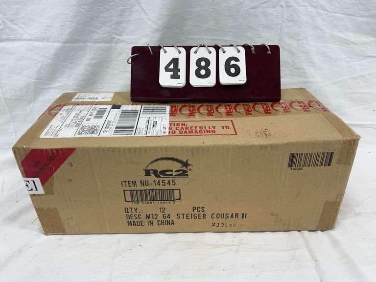 Factory sealed box of 12 tractors. Item number 14545. These were destined to be customized & stickered as 2008 KFYR Agri-International Show tractors, but alas, they were left out. As pictured.