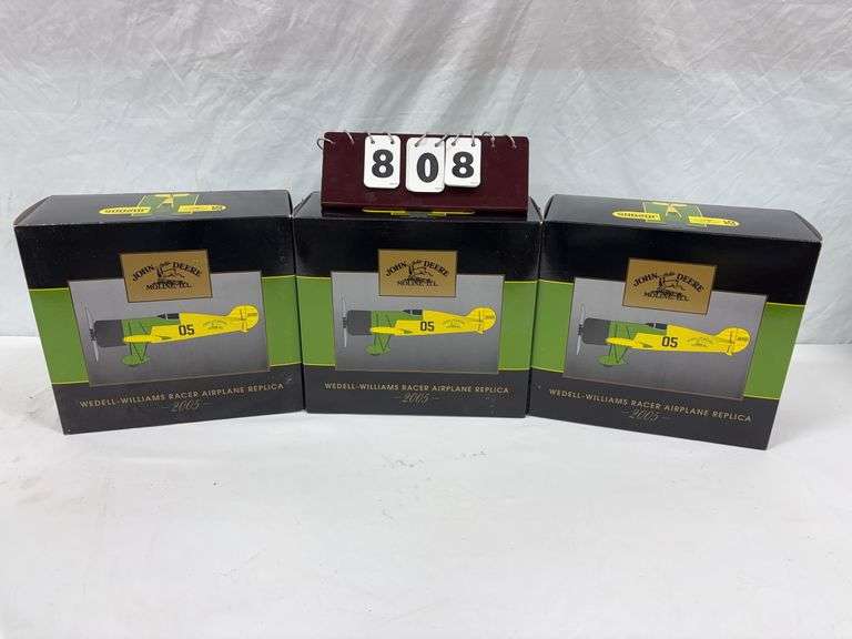 Replica 1932, limited edition, John Deere, Wedell-Williams Racer Airplane. It is constructred of die-cast metal, with pad printed graphics, and a baked enamel finish. As pictured.