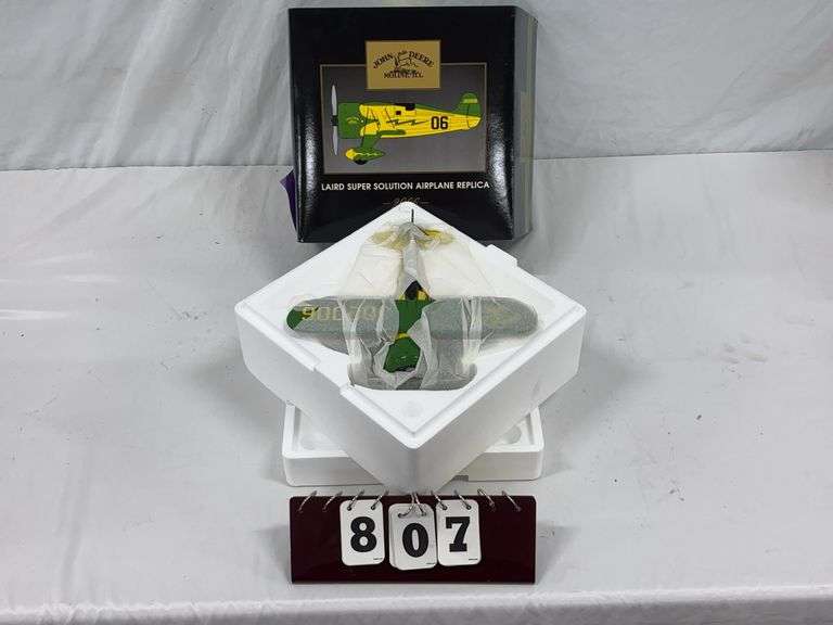 Replica 1931 Laird Super Solution, limited edition John Deere airplane. It has pad printed graphics, a baked enamel finish, and is made of die-cast metal. New, in never opened box. As pictured.