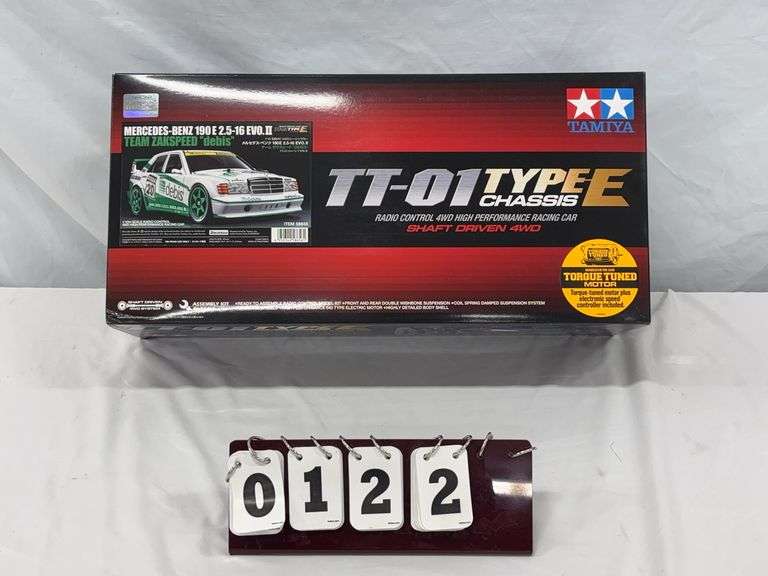 Opened kit. TT-01 Type E shaft driven 4WD chassis. May or may not be complete. Box shows light wear. As pictured.