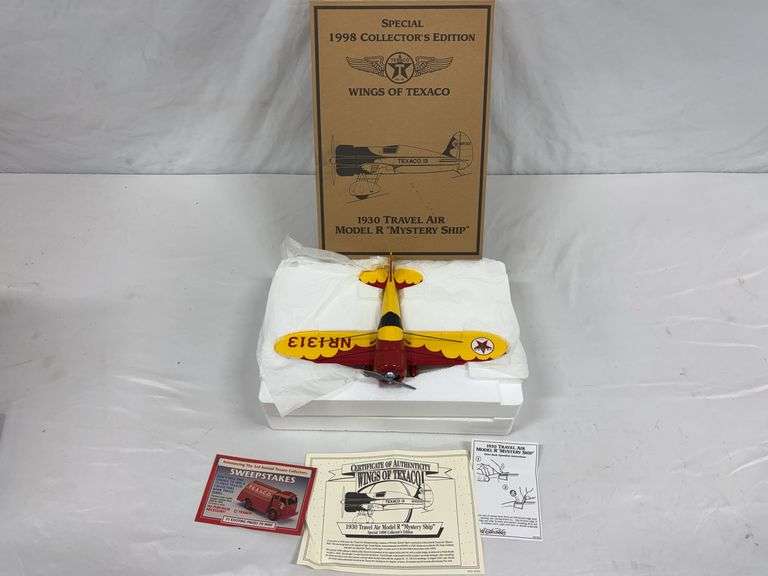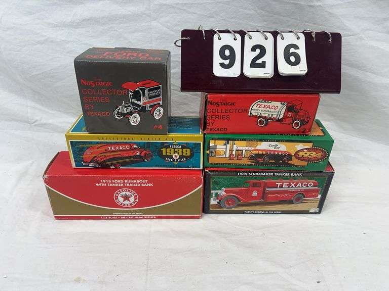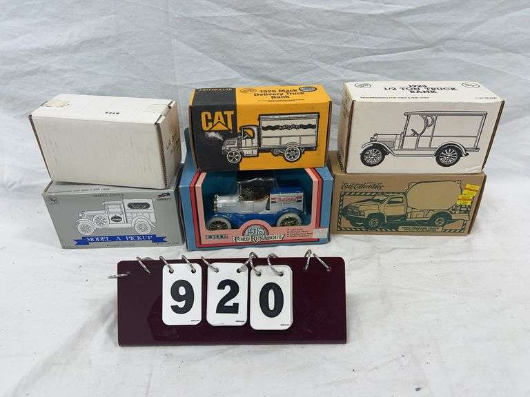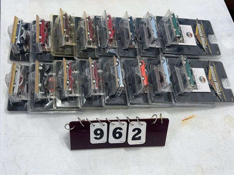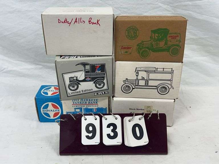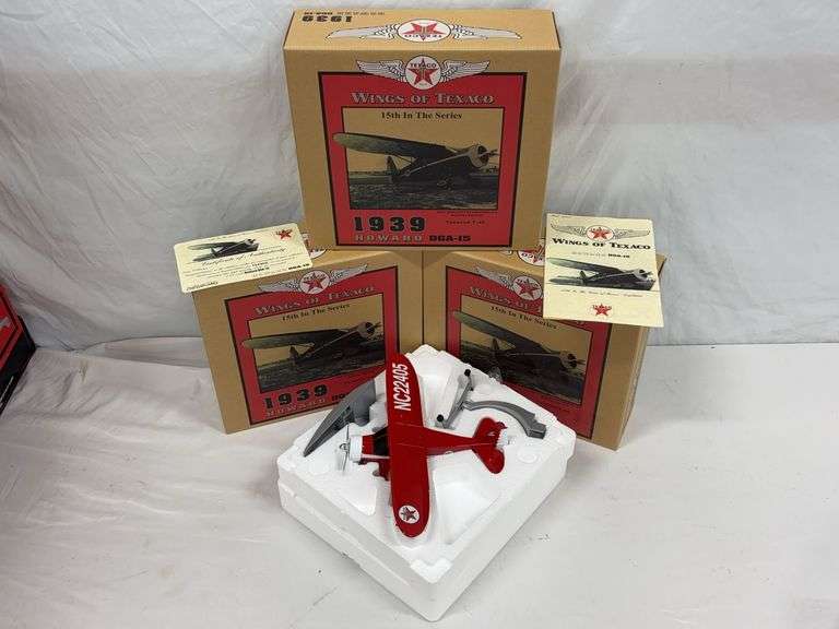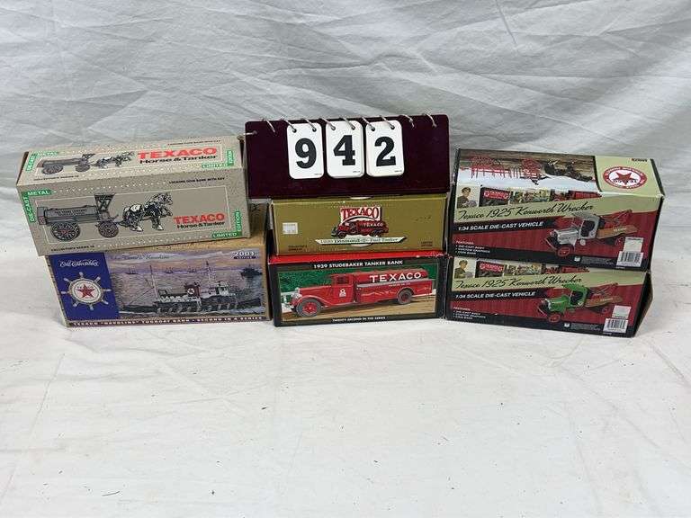 This auction features an expansive and highly curated lineup of vintage and modern die-cast vehicles, metal toy trucks, collector-grade airplanes, and promotional banks. This auction showcases a standout selection of ERTL 1/18 scale American muscle cars, Texaco Wings of Texaco planes, and Liberty Classics John Deere and Shell-branded airplane coin banks. Highlight pieces include a Nylint, metal toy crane, an Evel Knievel, scramble van, a custom R/C wooden boat, and numerous Harley-Davidson, die-cast collectibles. Enthusiasts will find a treasure trove of 1/64 scale semi-tractor trailers, promotional farm show editions, pedal tractor parts, and nostalgic belt buckles from the National Finals Rodeo. Also featured are HO and O gauge model trains, Barbie dolls, McDonald’s collectibles, Breyer horses, and hundreds of vehicle banks with gas, oil, and beer brand advertising. With several items new in the box, display-ready, or ideal for restoration, this auction is perfect for the discerning collector or reseller.