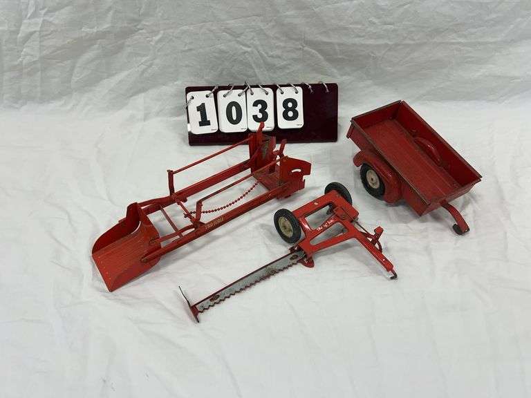 This auction is the second of the complete dispersal of inventory from C & C Little Iron Toys. This auction features airplane banks, truck coin banks, trains, tractors that have been played with, scale model trucks, parts for multiple scales of farm toys and pedal tractors. There are over 350 lots on this auction.